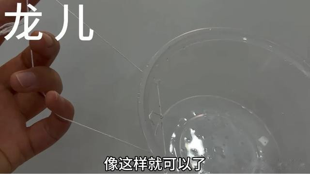 穿好之后,我们在这个绳子这一边打上死结。像这样就可以了,咱们只需要把刚才改造好的这个一次性包装盒,套在洗碗池的水龙头上面。