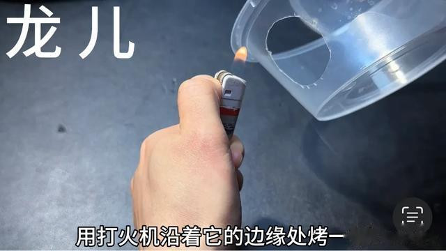 所以我们搓的时候千万不要把它戳破了。搓开之后,我们再来用剪刀修剪就要方便许多。.这样一个小圆孔就剪好了,这个时候用打火机沿着它的边缘处烤一烤,后期用的时候会更加的方便,把它烤的圆润一点,像这样不刮手就可以了。